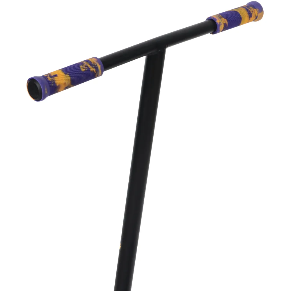 Самокаты изготавливаются в чёрных и фиолетовых тонах с дизайном «леттеринг». Грипсы 12 см, имеют два цвета с барендами из пластика.